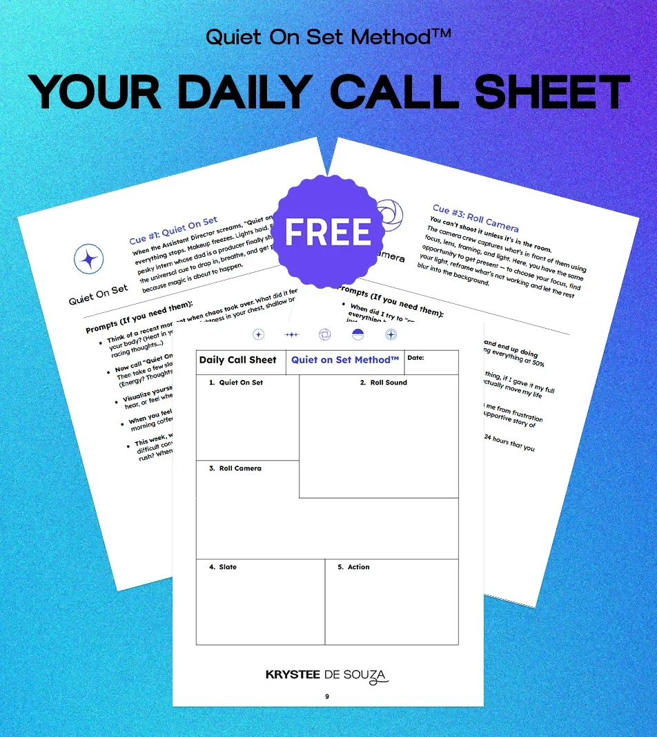 “The Quiet On Set Method has truly changed my life. It’s become a grounding daily ritual that brings me back to myself—even while juggling a three-year-old, family stuff, and my career. Those 10 minutes give me space to breathe, reflect, and realign instead of comparing myself to who I used to be. And somehow, when I started protecting that time, the universe started reorganizing around it. I got three callbacks! I feel lighter, more connected and more like myself. Now the cues are so ingrained I use them to reset and stay grounded in real time.
